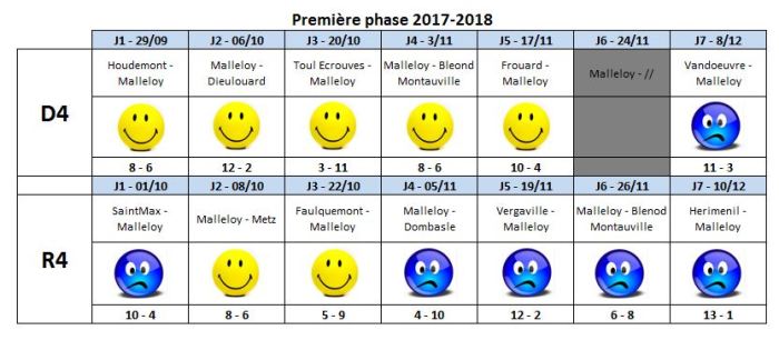 - la D4 perd face à Vandoeuvre sur le scor, malgré cela, envisager la montée en terminant 2e de son groupe.