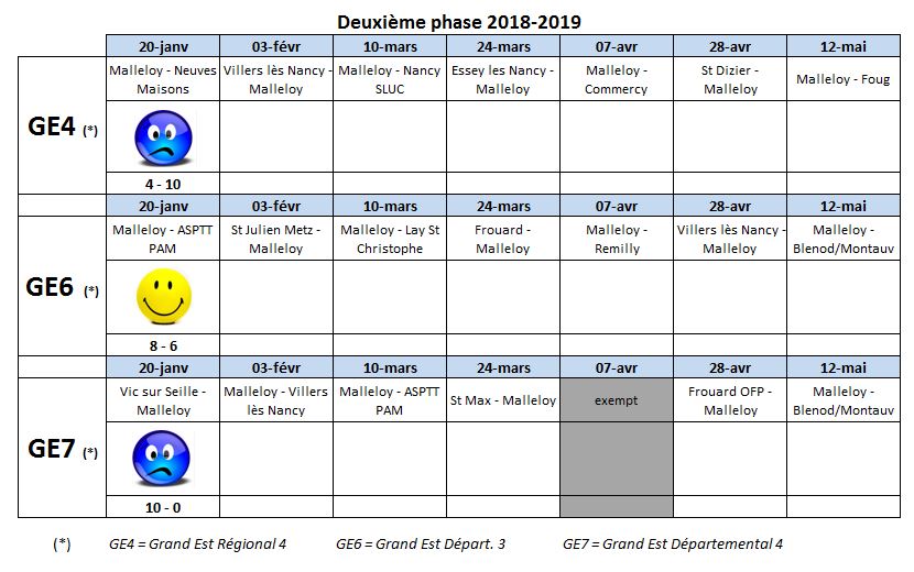 GE4 : Défaite de l’équipe première face à Neuves-Maisons (10-4). Belle resistance de Gilles, des 2 Damiens et de Régis.
