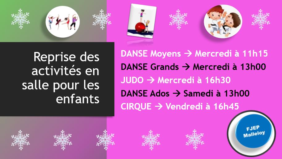 Nouveaux horaires – activités enfants Publié 6 janvier 2021 Par cath En raison de l’avancement de l’heure du couvre-feu à 18h, voici les nouveaux horaires des activités « enfants » applliqués dès maintenant. Partager: Cliquer pour partager sur X(ouvre dans une nouvelle fenêtre) X Cliquez pour partager sur Facebook(ouvre dans une nouvelle fenêtre) Facebook J’aime chargement… Similaire Publié par cath Voir tous les articles par cath